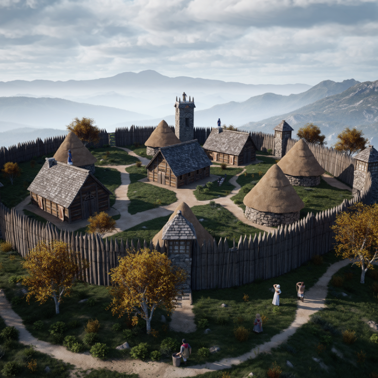 ca. 500 x 180 m großen, ovalen Wallanlage umgeben, die ca. 7,3 ha geschützter Innenfläche einschließt.